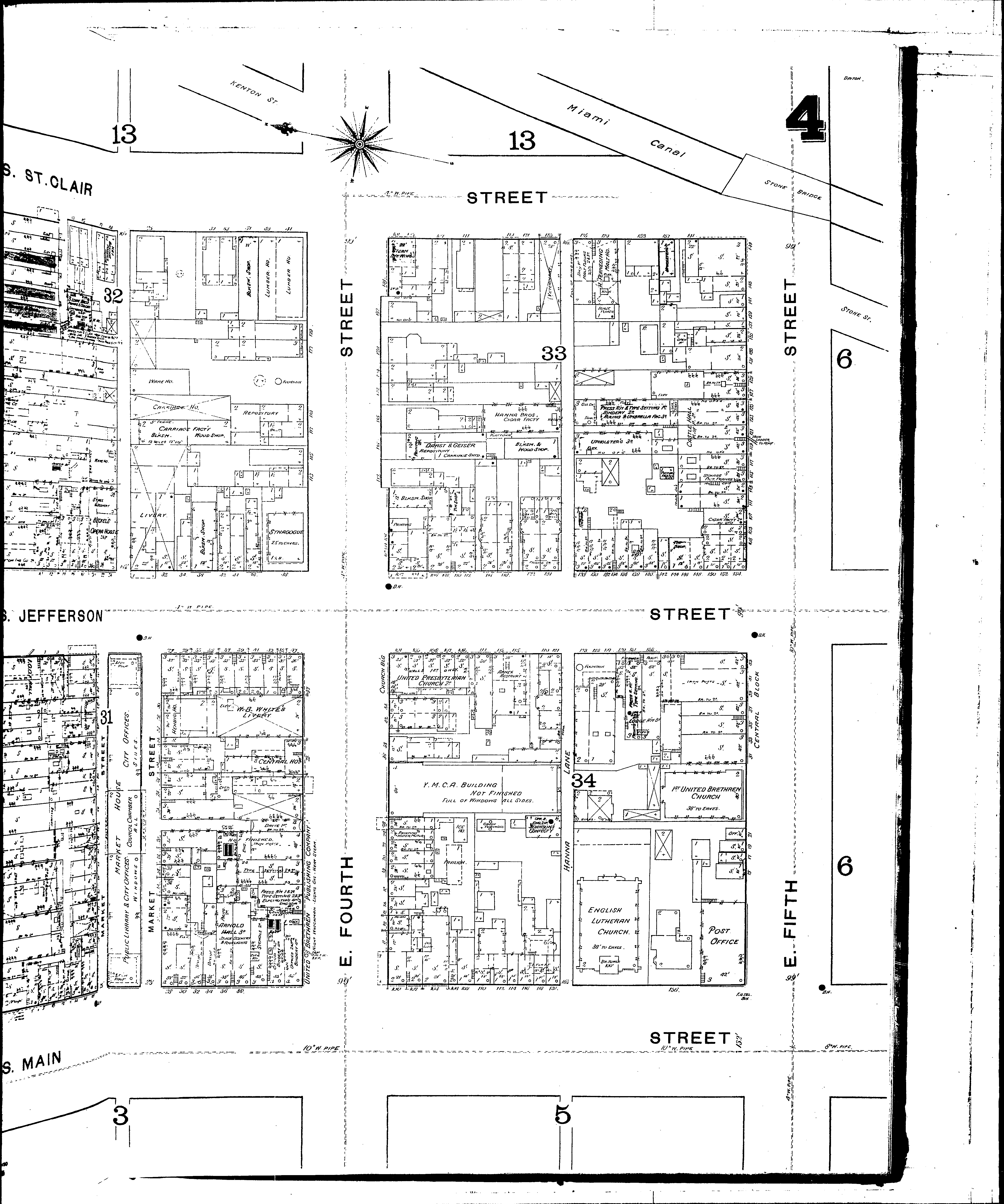 Locations: American Screw & Bolt Case Co Annex Restaurant Arnold Hall Atlanta Hotel Beckel House Beckel Opera House Castle Hall, K. of P Central Block Central Hotel Church Building City Offices Darst & Geiser, Carriage Fact Dayton Canvas Awning Factory Dayton Loop & Crupper Co English Lutheran Church Ferneding, H., Malt House First United Brethren Church Gem Shirt Factory Gibbons & McCormick, Plmbrs, &c Hanna Bros., Cigar Factory Herald Printing Holden Book Cover Co Huttman Block I. O. O. F. Hall Johnsons Confectionery Key Baking Powder Works Knecht Hotel Long, T. P., Shirt Factory Lowe Bros. Paint & Color Wks Market House, Market Street Mead, H. E., Wholesale Paper and Printing National Cash Register Co Park Presbyterian Church Perrin Hall St. Johns Lutheran Church Simms Block Synagogue United Brethren Publishing Co United Brethren Presbyterian Ch U. S. Post Office Watts Block Y. M. Ch. Association Building