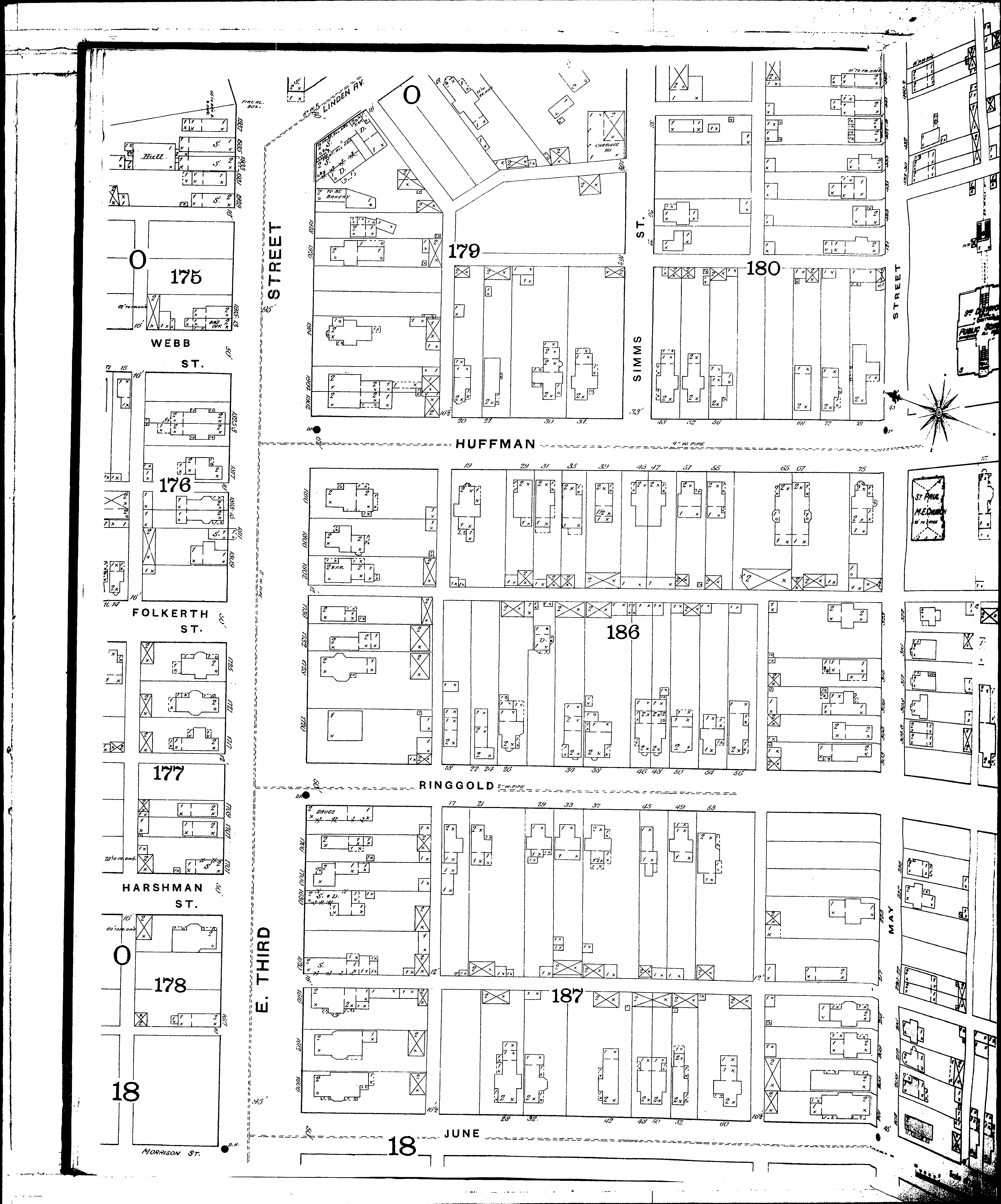 Streets: Centre [1-50] Fifth, E [1801-1811] Fifth, E [1813-2150] Folkerth, near Third Harshman, near Third Huffman Ave June [2-166] Linden Ave [1-20] McReynolds [1-20] May [200-445] Newcom Ave [1-34] Ringgold Samuel [1-20] Simms [1-42] Third, E [1600-1618] Third, E [1617-1946] Webb, near Third