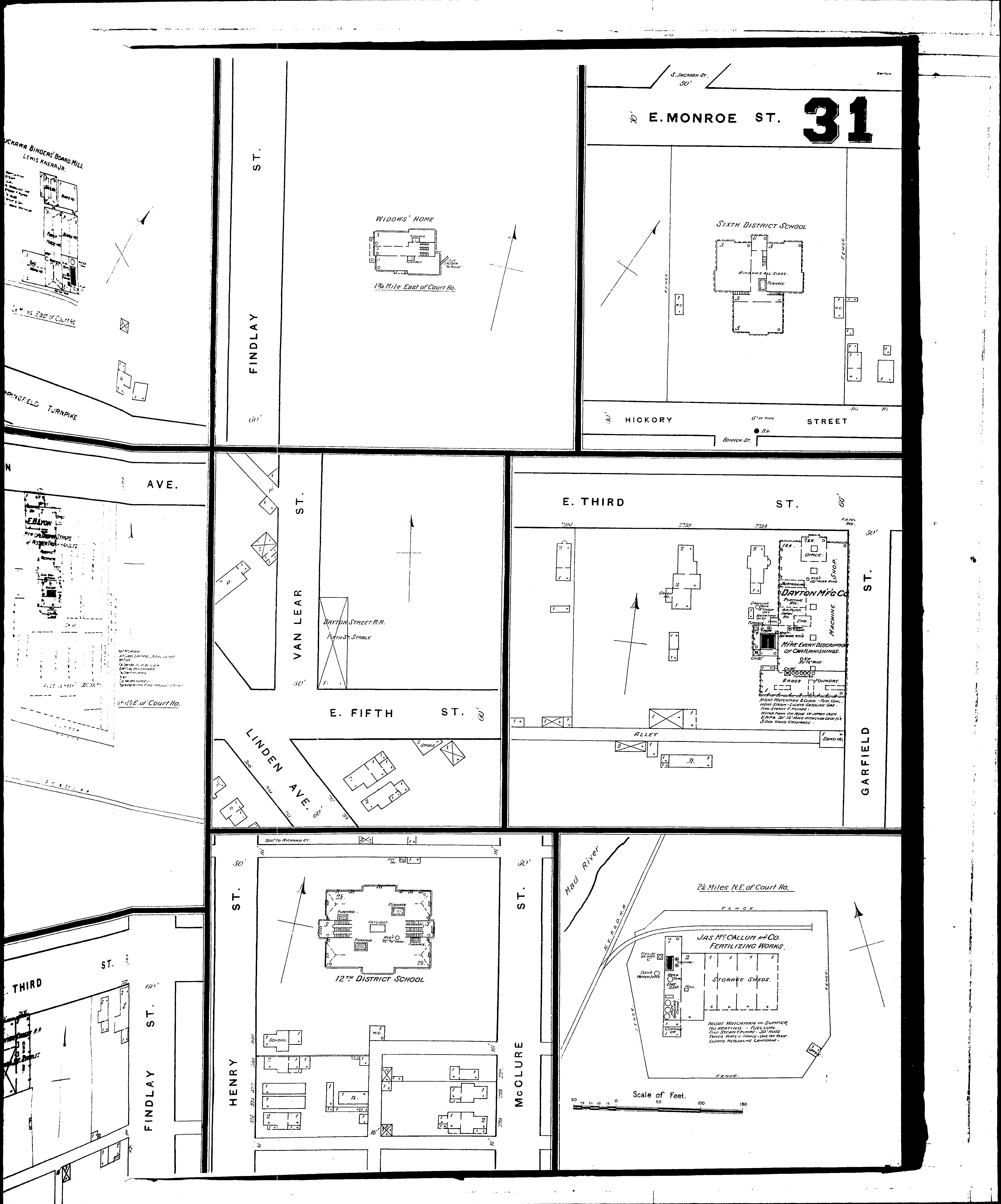 Locations: Dayton Manufacturing Co Focke, W., & Son, Slaughter Ho Jacobs, N., & Co., Slaughter Ho Knerr, L., Jr., Paper Mill Little, P., Machine Shop Lyon, E. B., Wood Works McCallum, J. & Co., Fertilizer Works Ruckawa Binders Board Mill Sixth District School Twelfth District School Widows Home
