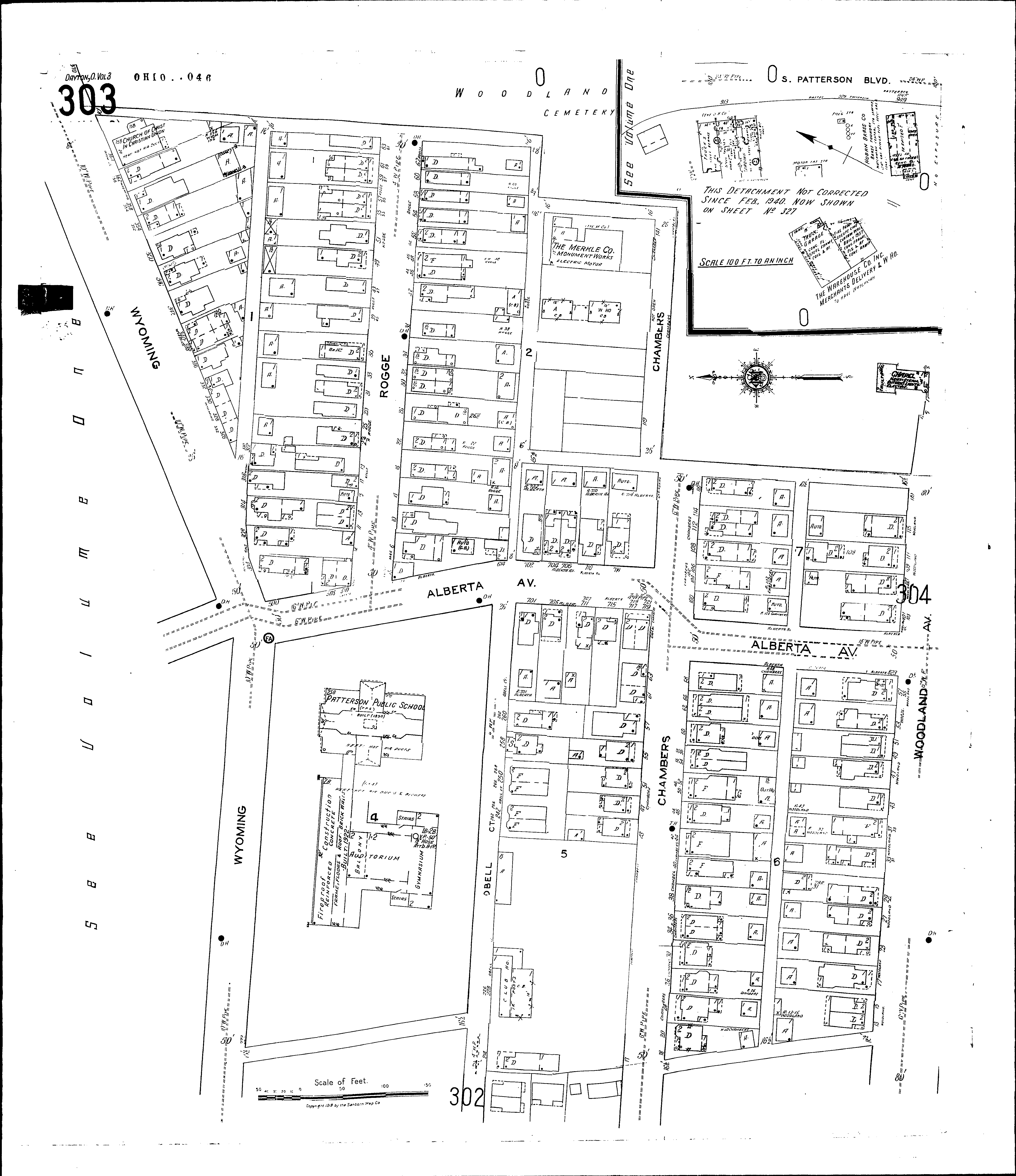 Locations: Church of Christ in Christian Union Boehners, J., Greenhouses Dayton Bread Co House of Jacob, Synagogue Merkle Co., Monument Works Patterson Public School Warehouse Co., Merchants Delivery, &c
