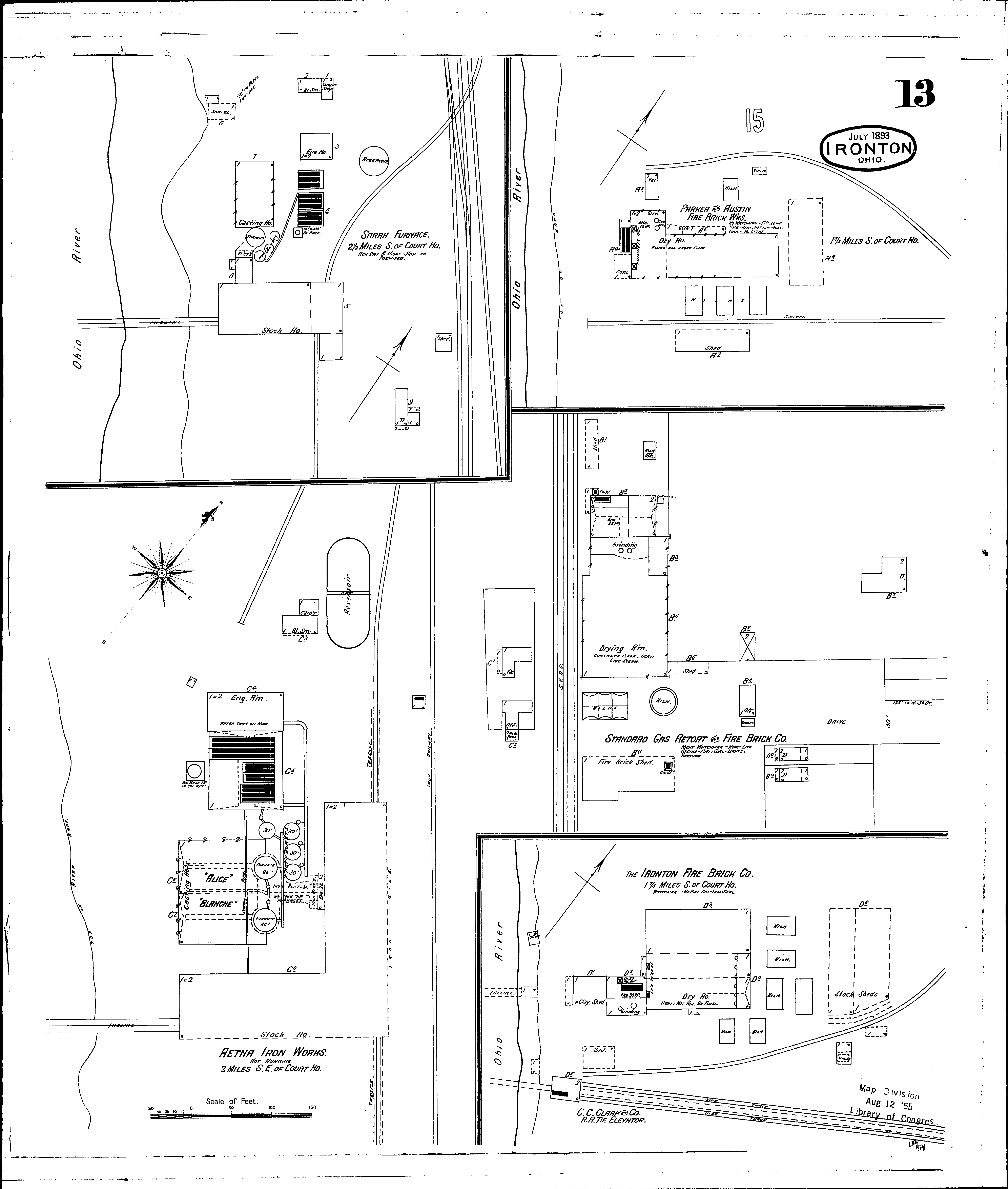 Locations: Ætna Iron Works Ætna Iron Works, Sarah Furnace Clark, C. C., & Co., R. R. Tie Elevator Ironton Fire Brick Co Ironton Iron Brick Co Parker & Austin, Fire Brick Works Sarah Furnace Standard Gas Retort & Fire Brick Co