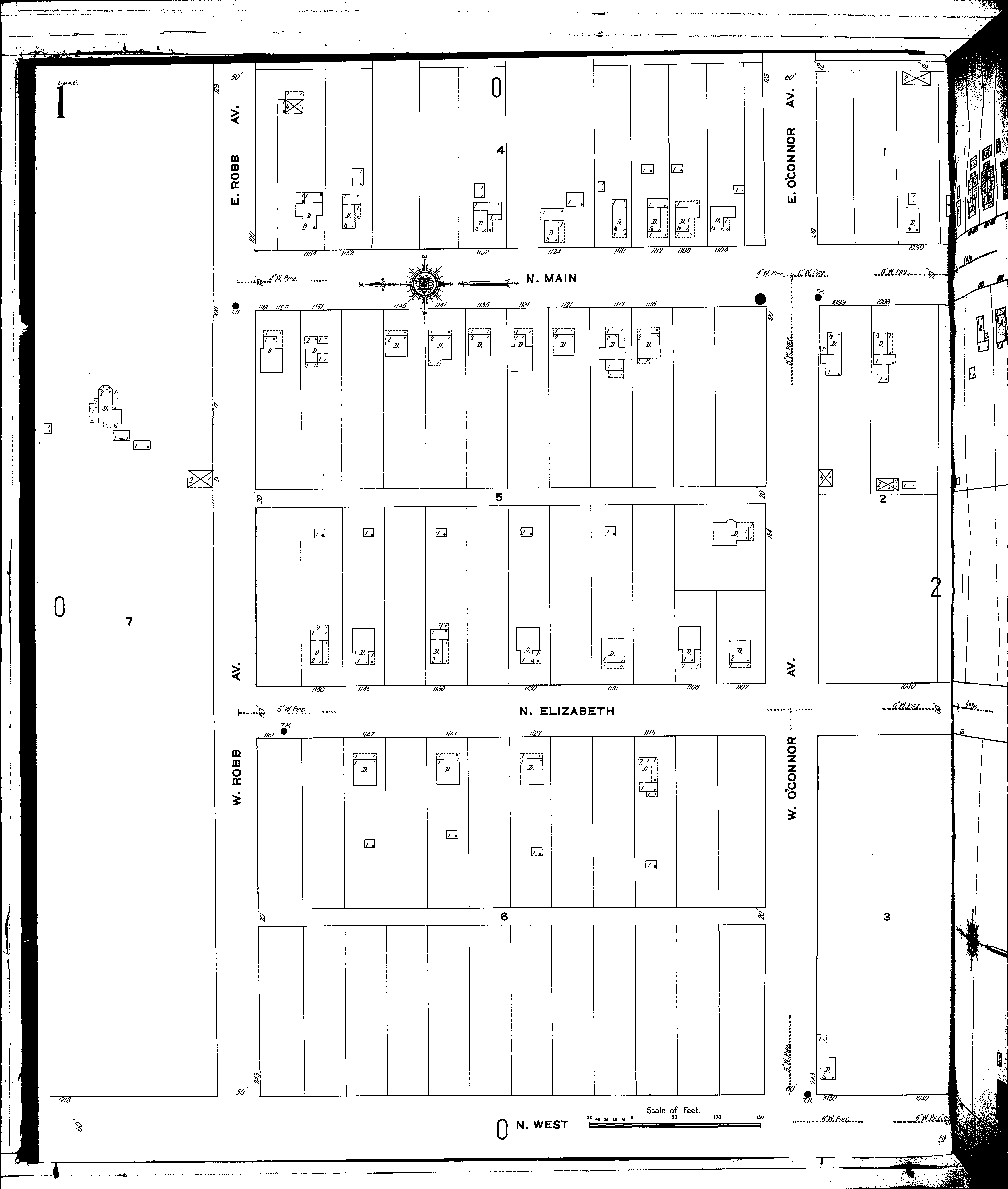 Streets: Elizabeth, N [1040-1161] Main, N [1090-1161] OConnor Ave., E [100-123] OConnor Ave., W [100-243] Robb Ave., E [100-123] Robb Ave., W [100-243] West, N [1040-1218]