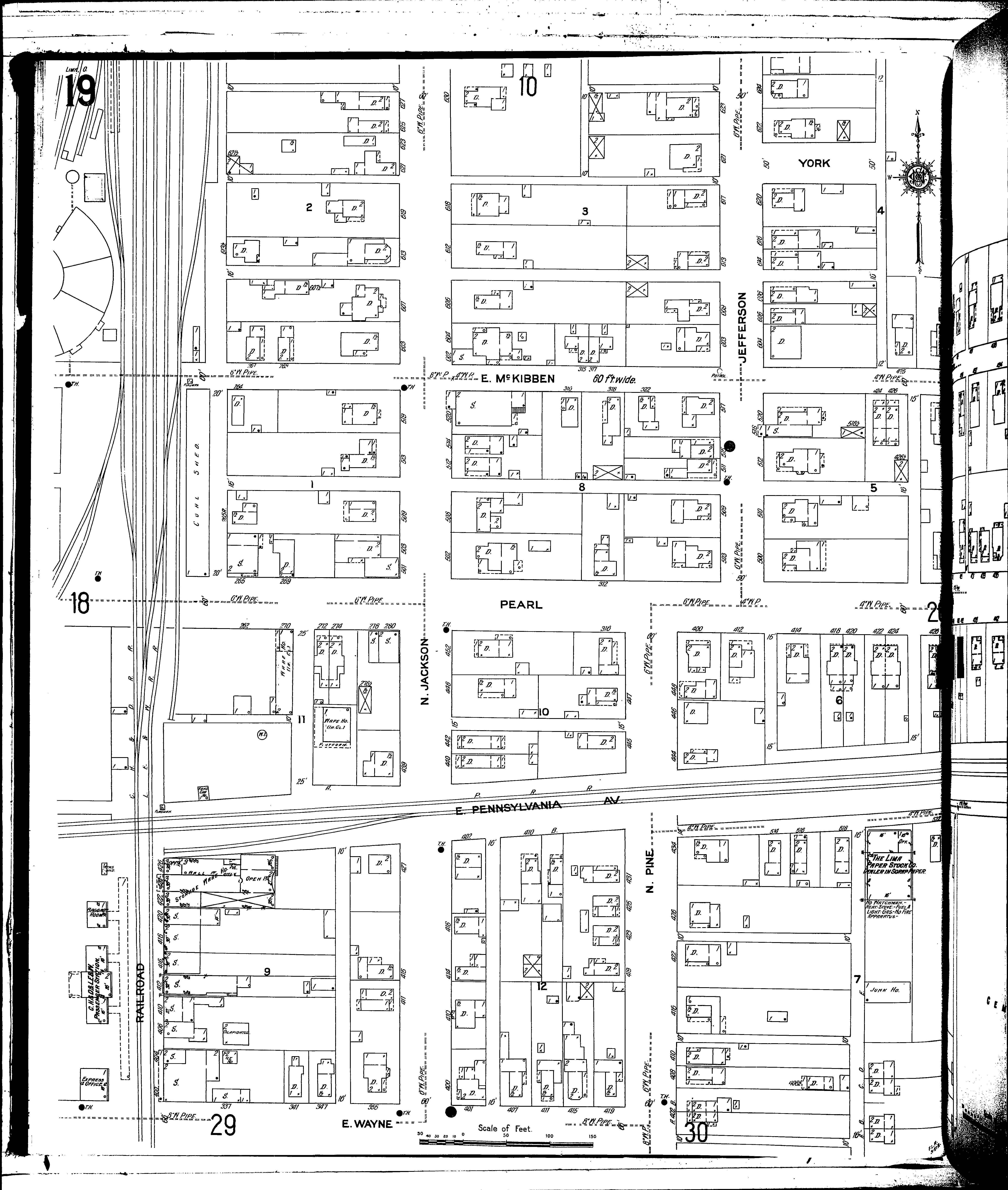 Streets: Jackson, N [400-630] Jefferson [500-624] KcKibben, E [242-426] Pearl [242-419] Pearl [420-426] Pennsylvania Ave., E [300-523] Pine, N [400-453] Railroad [400-427] Wayne, E [311-419] York