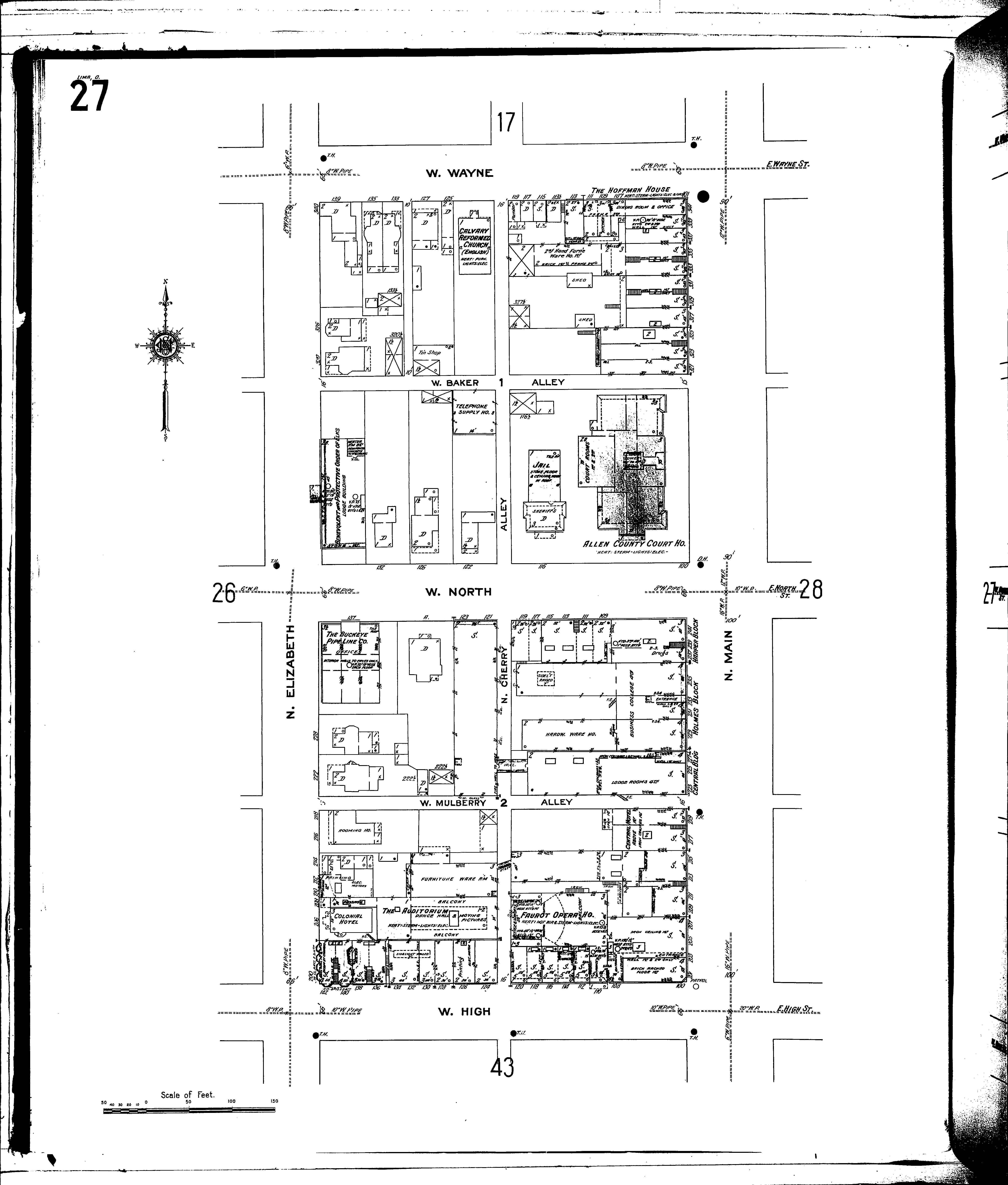 Streets: Baker Alley, W Cherry Alley, N Elizabeth, N [200-340] High, W [100-142] Main, N [201-341] Mulberry Alley, W North, W [100-139] Wayne, W [101-139]