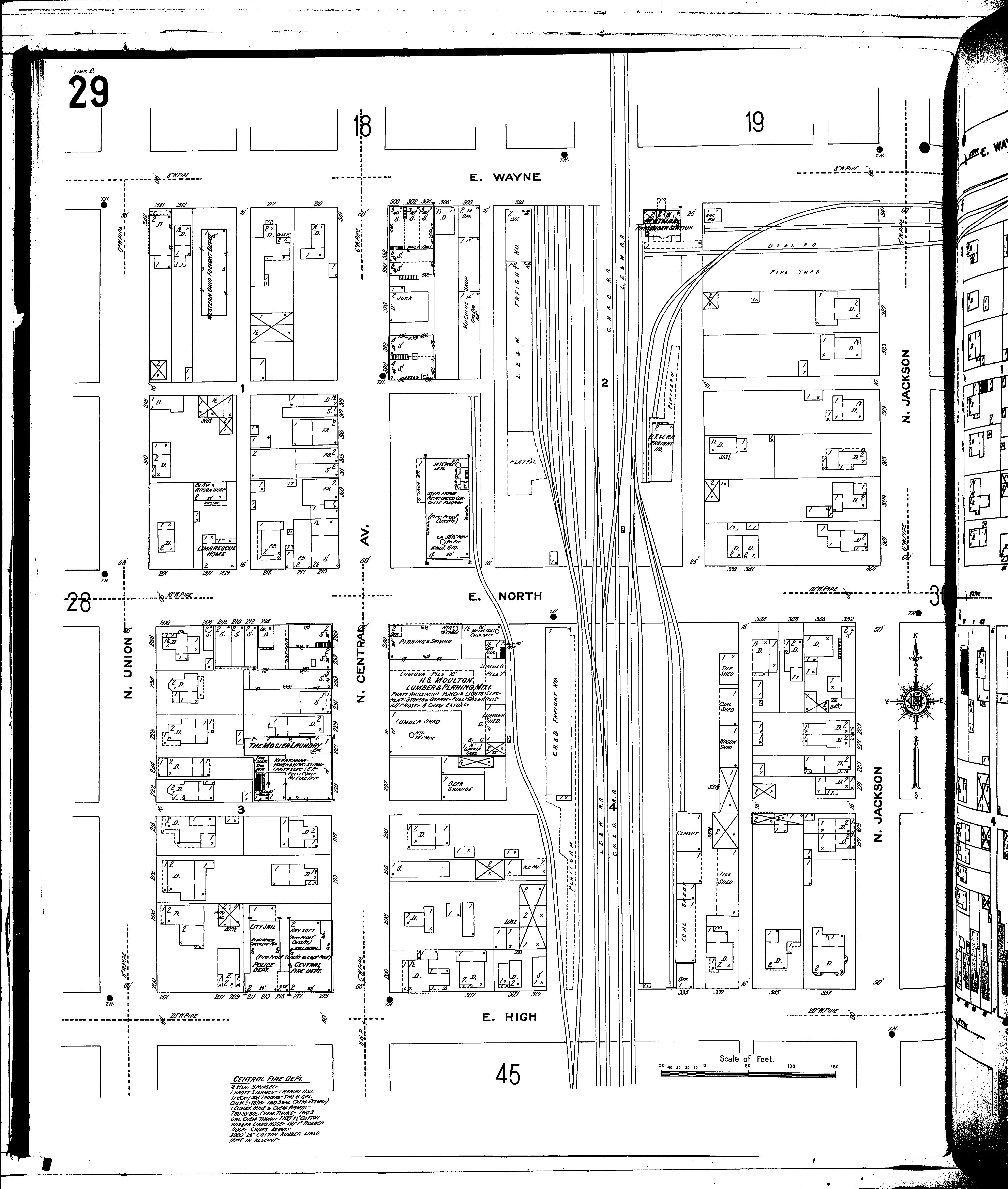 Streets: Central Ave., N [200-341] High, E [201-351] Jackson, N [201-341] North, E [200-355] Union, N [200-342] Wayne, E [200-350]