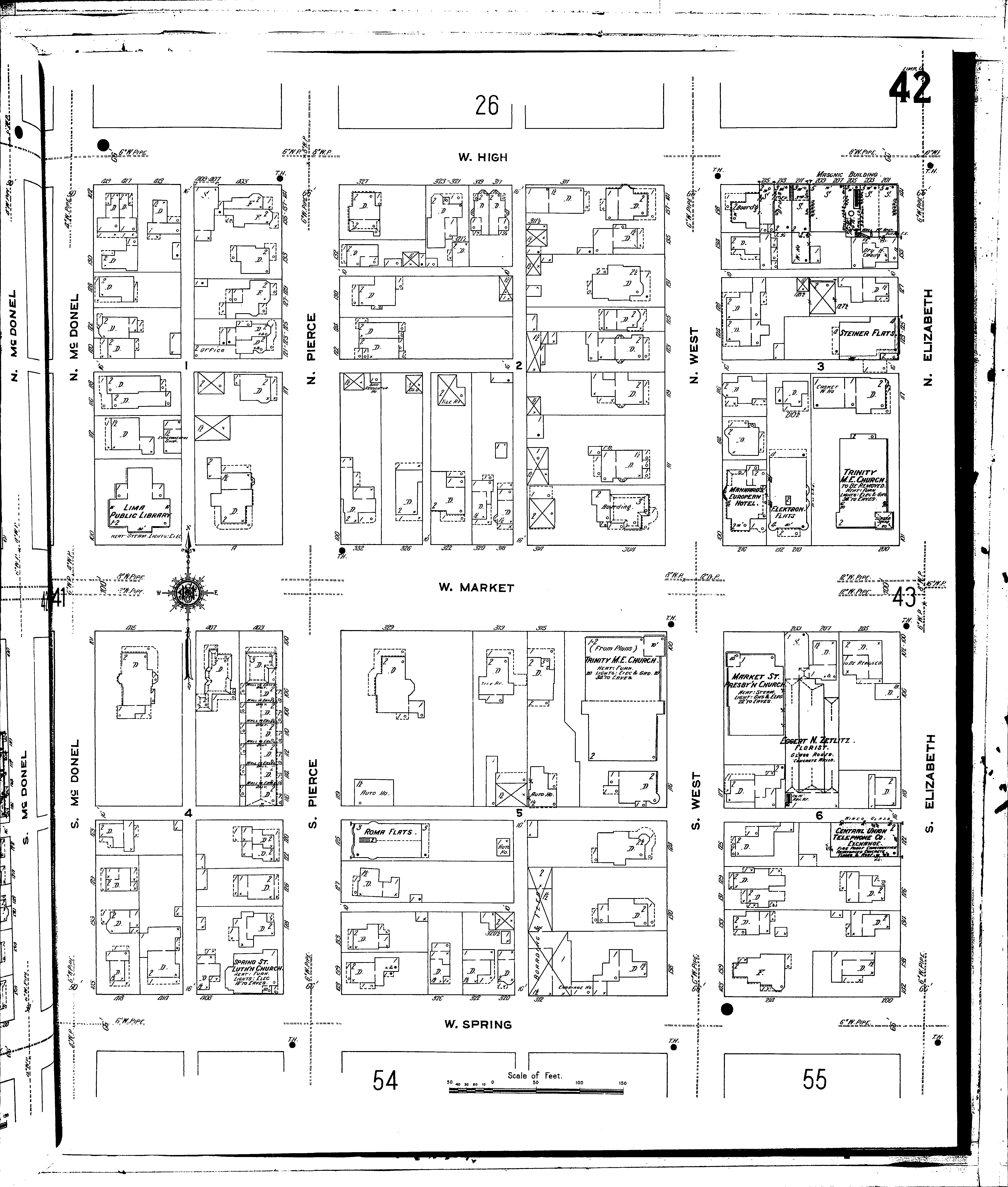 Streets: Elizabeth, N [101-141] Elizabeth, S [100-142] High, W [201-419] McDonel, N [100-142] McDonel, S [101-143] Market, W [200-419] Pierce, N [100-141] Pierce, S [100-143] Spring, W [200-418] West, N [100-141] West, S [100-143]