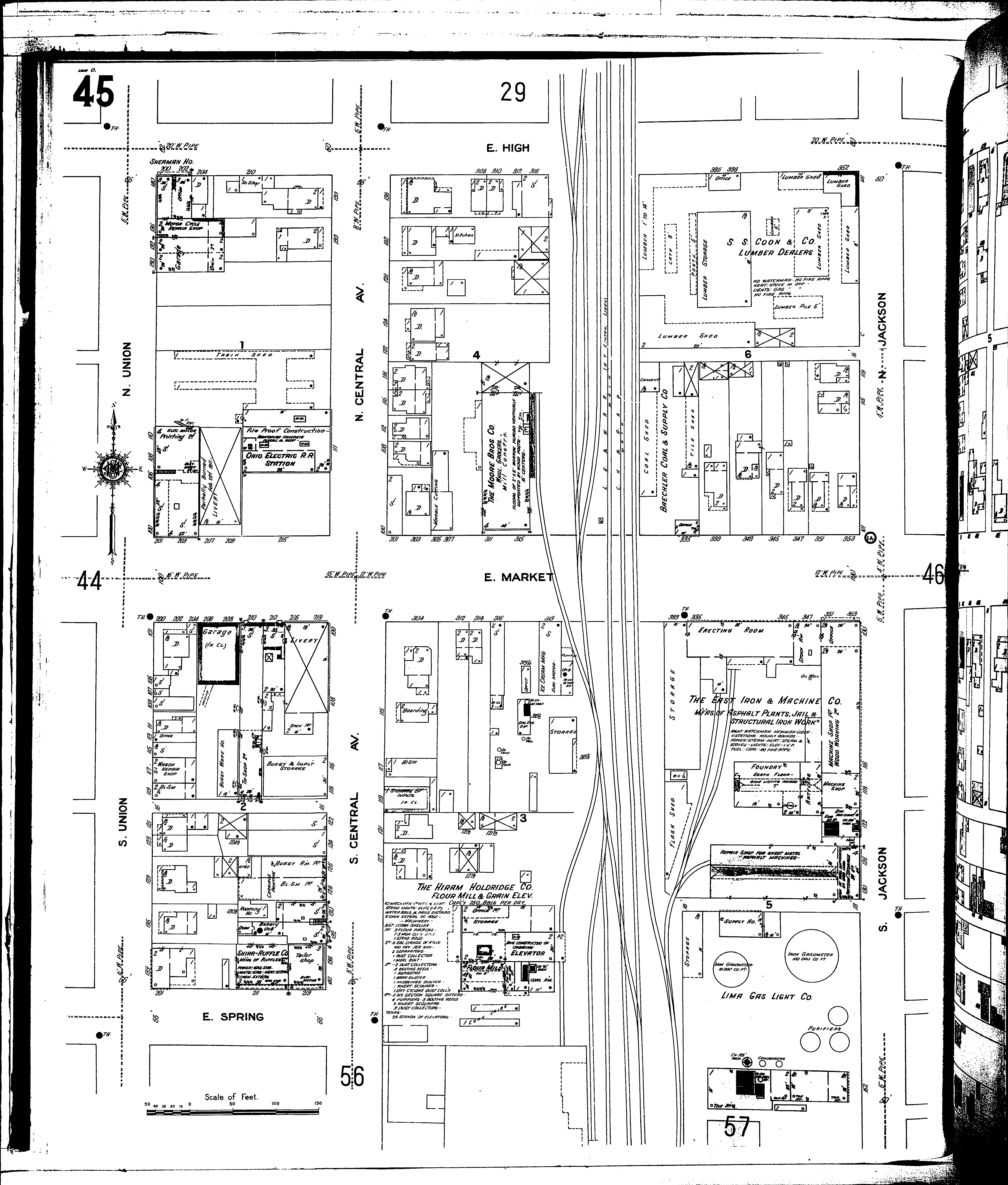 Locations: Baechler Coal and Supply Co Coon, S. S., & Co., Lumber Dealers East Iron and Machine Co Holdridge, H., Co., Flour Mill & Elevator Lima Gas Light Co Moore Bros. Co., Wholesale Grocers Ohio Elec. R. R. Co., Station Sherman House Shirr-Ruffle Co., Ruffle Mfg