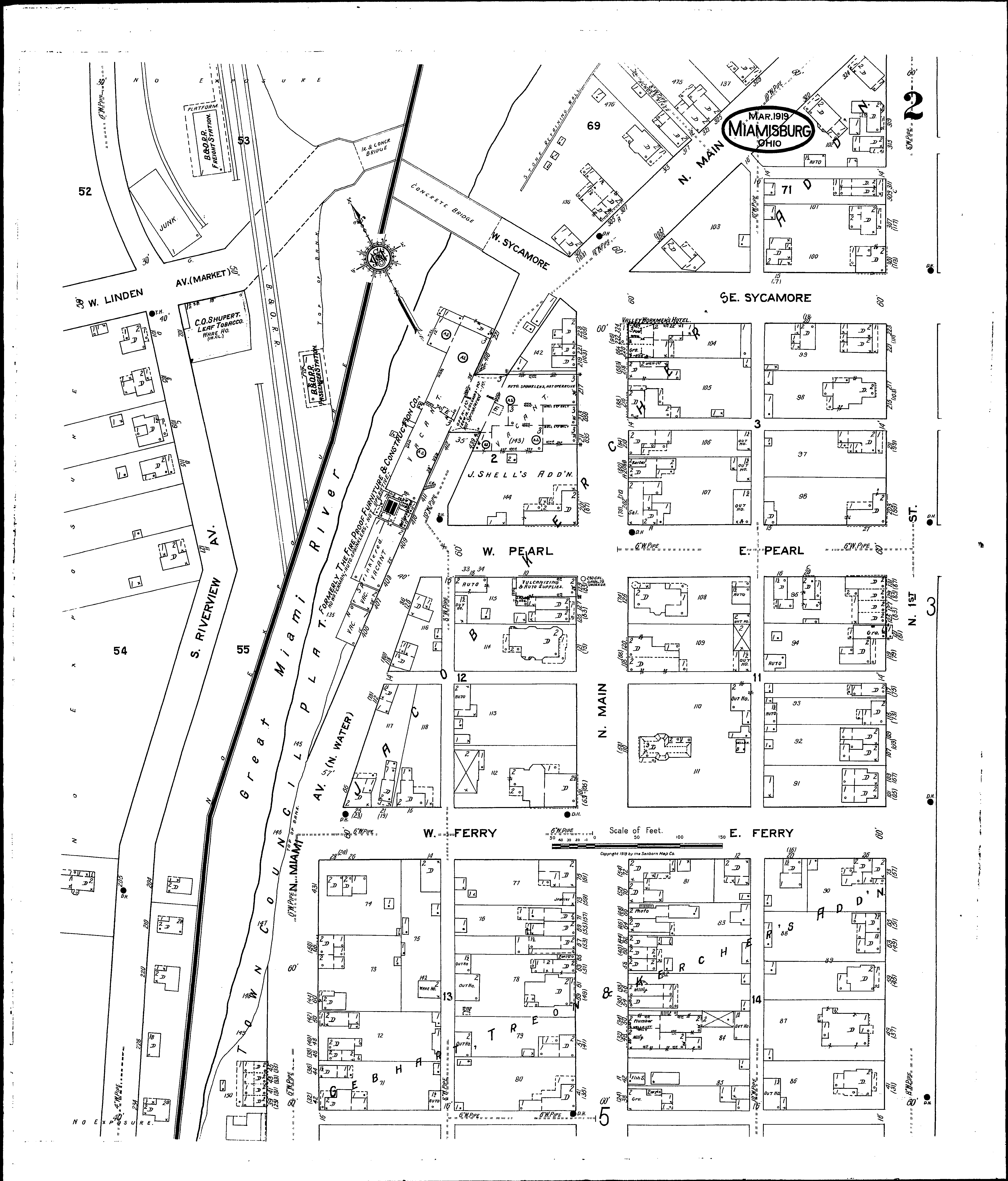Streets: Ferry, E [1-30] Ferry, W [1-30] First, N [39-323] Linden Ave., W [near S. Riverview Ave.] Main, N [38-329] Miami Ave., N [39-226] Pearl, E [1-28] Pearl, W [1-22] Riverview Ave., S [100-237] Sycamore, E [1-30]