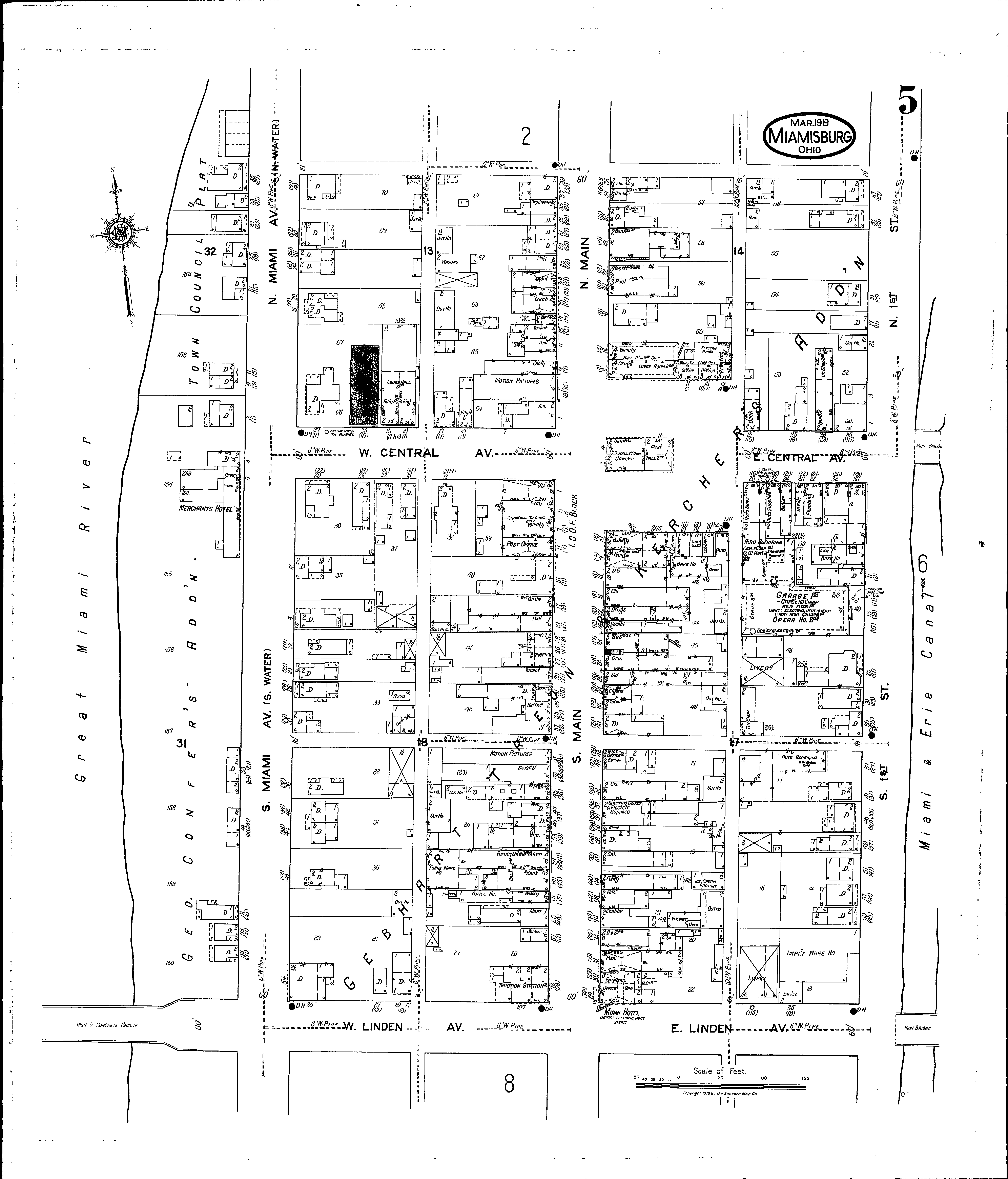 Streets: Central Ave., E [1-36] Central Ave., W [1-32] First, N [1-37] First, S [1-69] Linden Ave., E [1-35] Linden Ave., W [1-27] Main, N [1-39] Main, S [1-84] Market [1-27] Miami Ave., N [1-40] Miami Ave., S [1-56] Water, N [1-40] Water, S [1-56]