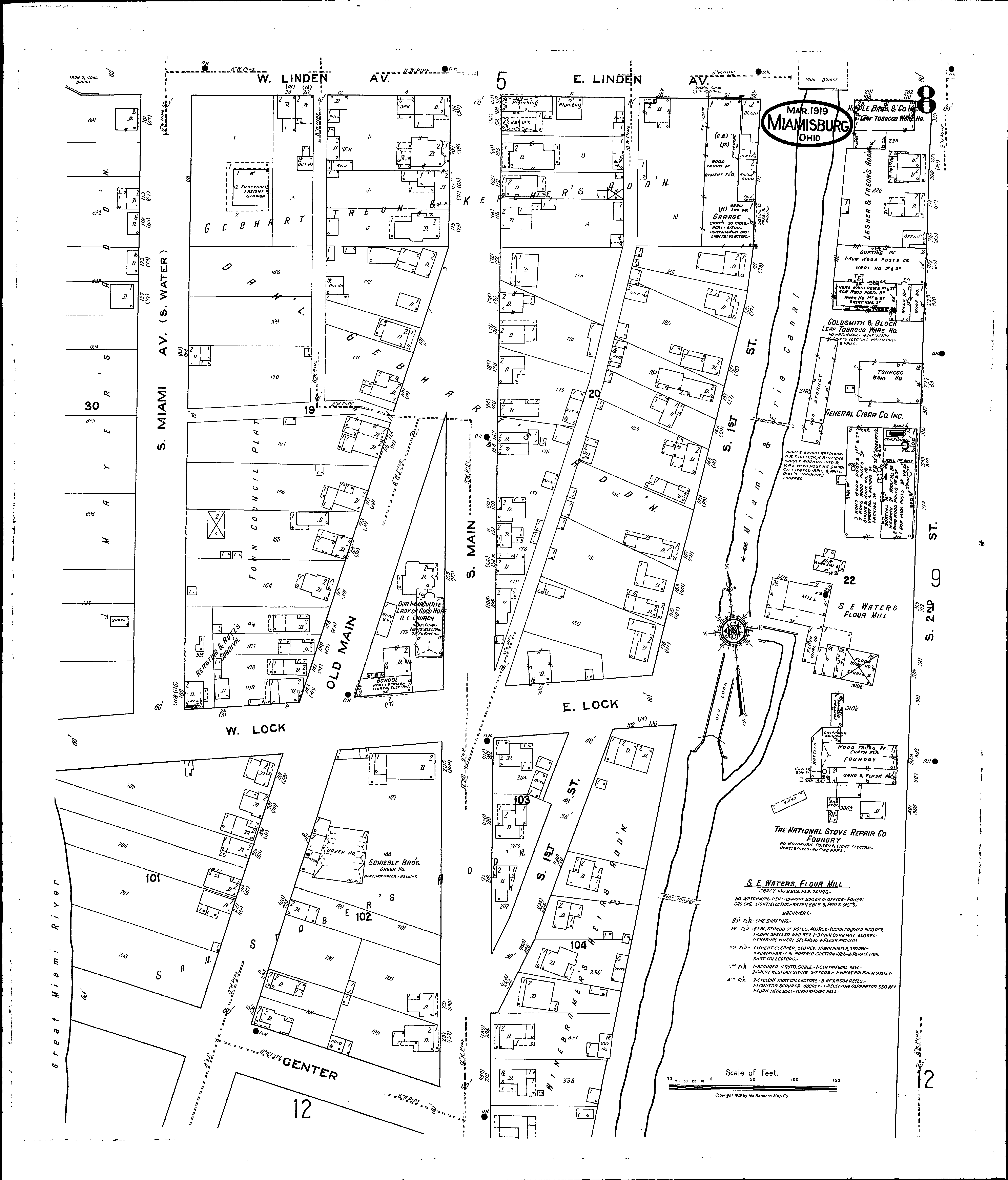 Streets: Center [1-119] First, S [100-233] Linden Ave., E [2-112] Linden Ave., W [2-40] Lock, E [1-110] Lock, W [1-108] Main, S [100-239] Main, S [300-310] Miami Ave., S [100-169] Old Main [1-236] Second, S [201-435]