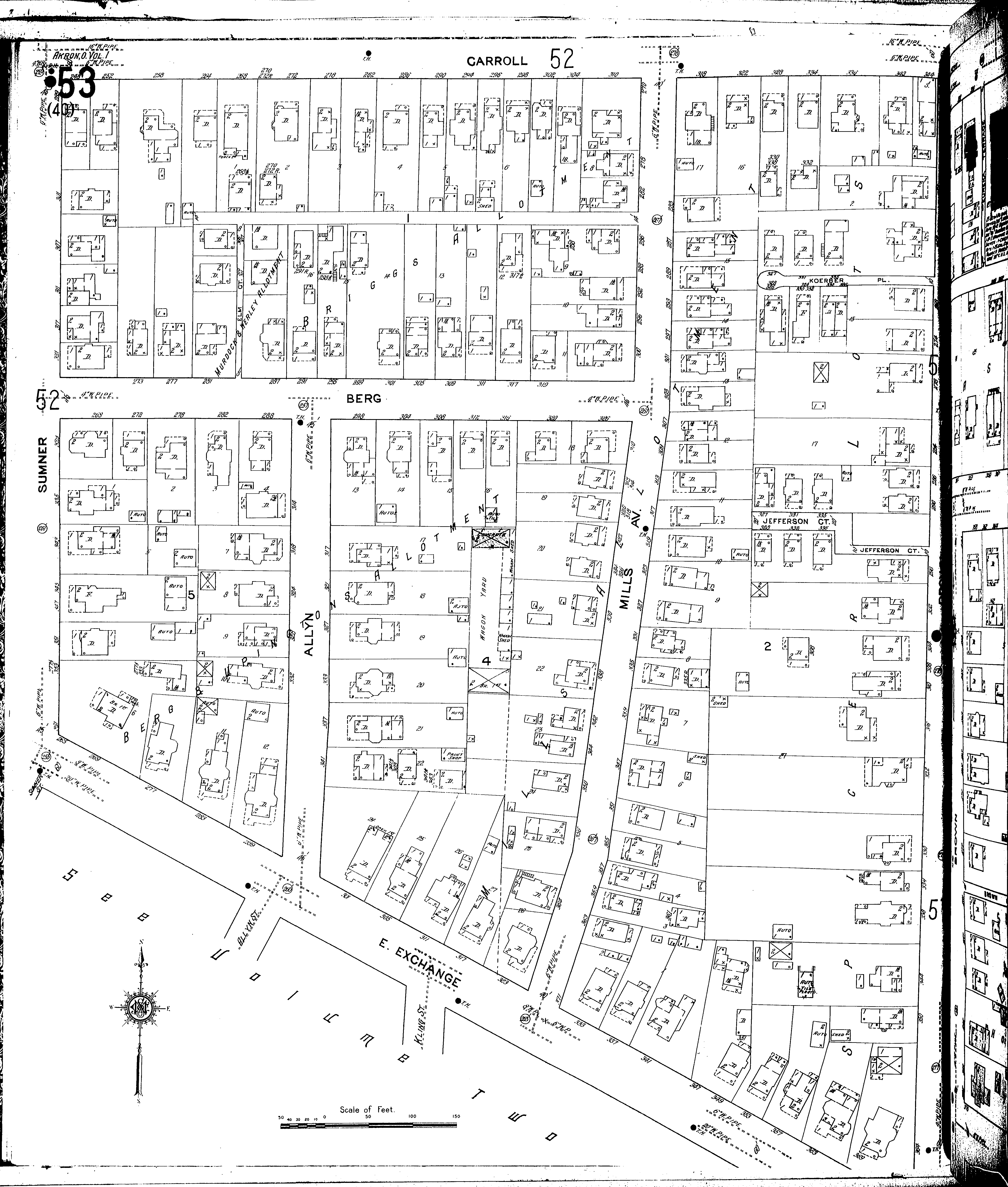 Streets: Allyn [300-355] Berg Brown [246-366] Carroll [246-344] Elm Court Exchange, E [261-373] Jefferson Court Koerber Place Mills Ave [270-371] Sumner [287-361]