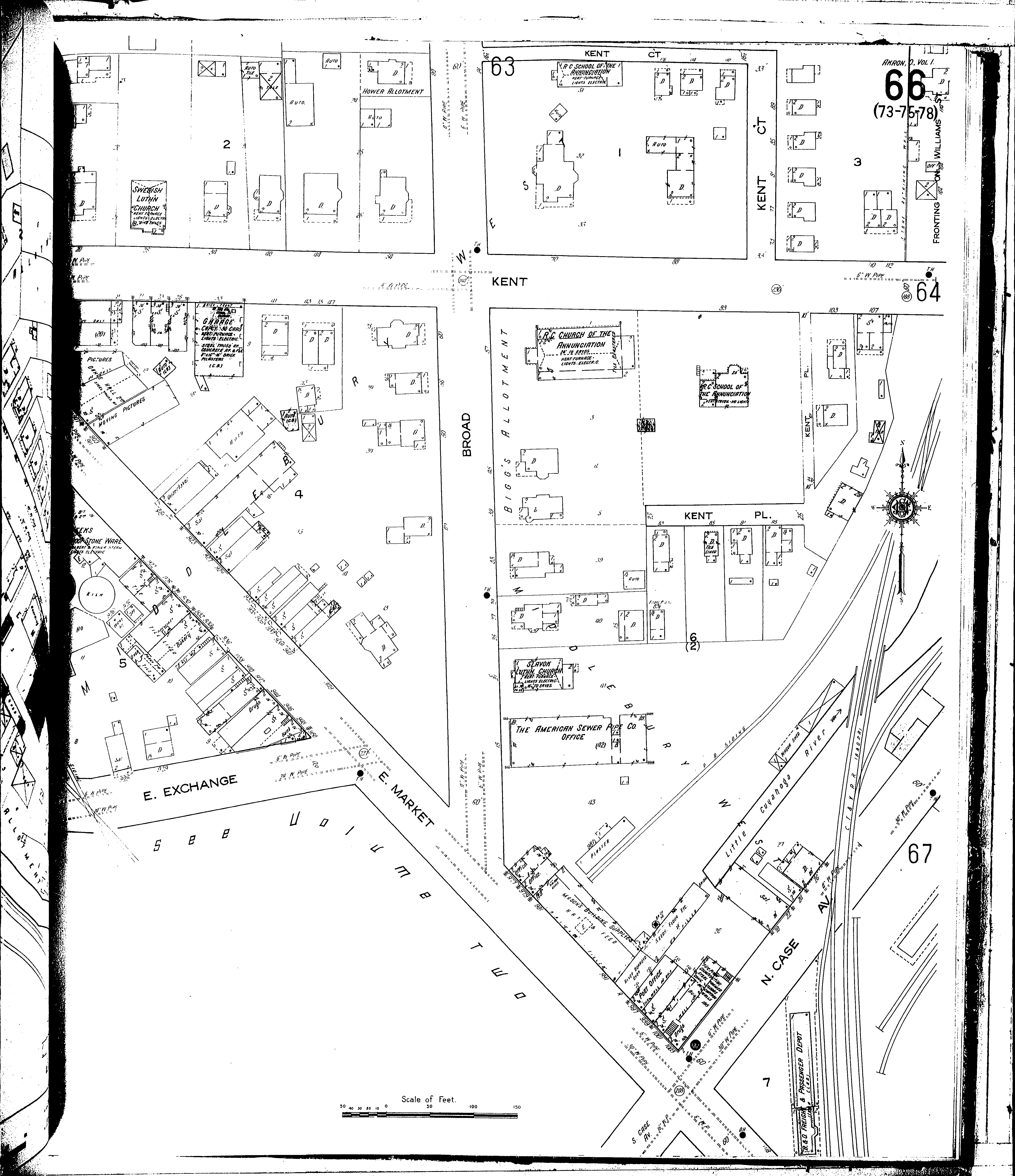 Locations: American Sewer Pipe Co.: Office B. & O. R. R. Depot Post Office, Station, 997 E. Market St R. C. Church & School of the Annunciation Slavok Lutheran Church Swedish Lutheran Church Weeks, A. J., Acid Proof Stoneware Mfg