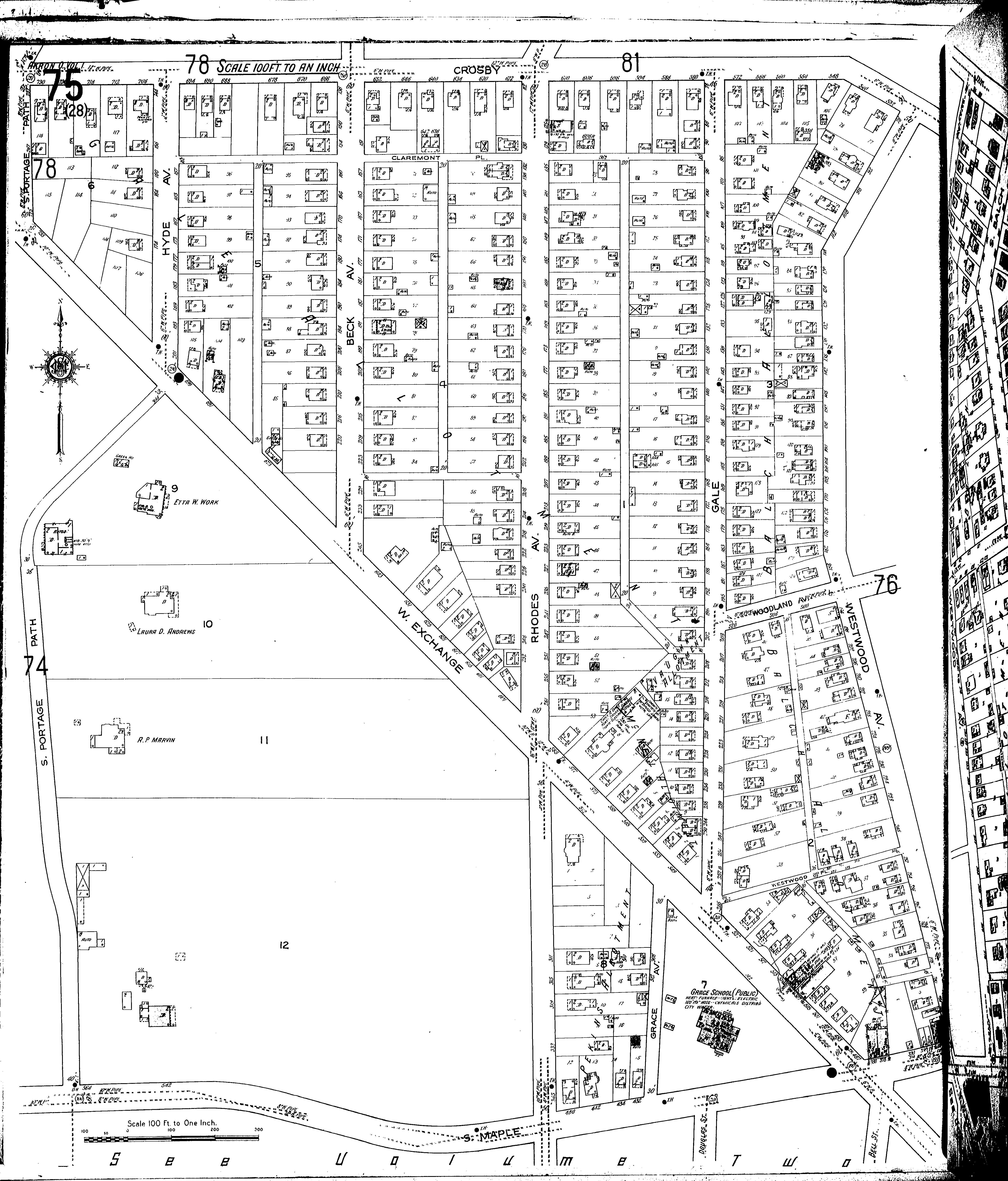 Streets: Beck [134-245] Claremont Place Crosby [528-730] Exchange, W [486-699] Exchange, W [701-755] Gale Hyde Ave Maple, S [364-564] Portage Path, S [257-275] Rhodes Ave [111-346] Westwood Ave [78-302] Westwood Place Woodland Ave [490-521]