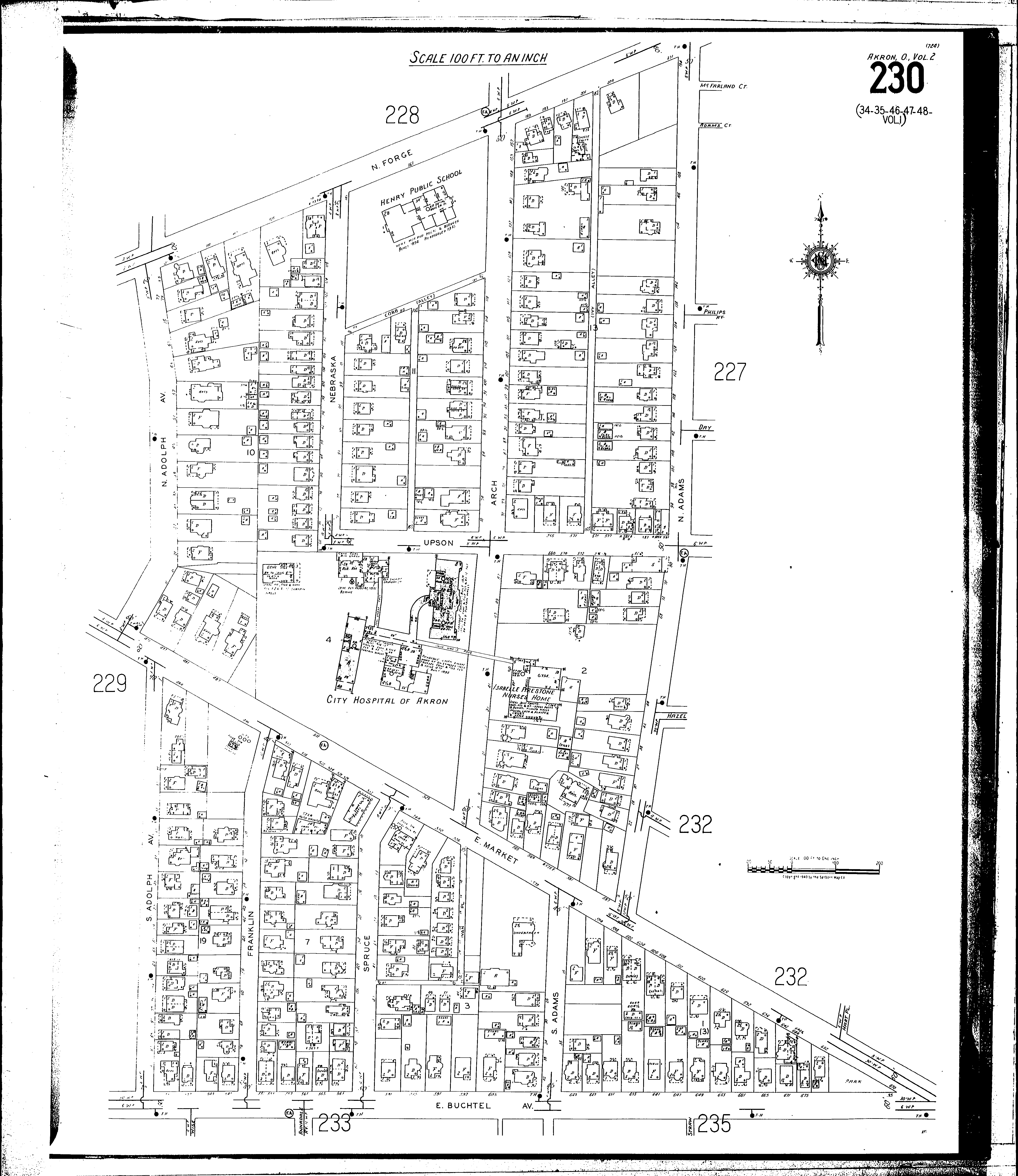 Streets: Adams, N [2-198] Adams, S [1-42] Adolph Ave., N [1-83] Adolph Ave., S [1-99] Arch [1-166] Buchtel Ave., E [523-695] Cobb Cobb, Alley Forge, N [101-235] Franklin [1-82] Ivan Place [1-62] Ivy Alley (formerly) Market, E [461-475] Market, E [476-589] Market, E [590-672] Nebraska [66-145] Spruce [1-64] Upson [516-595]