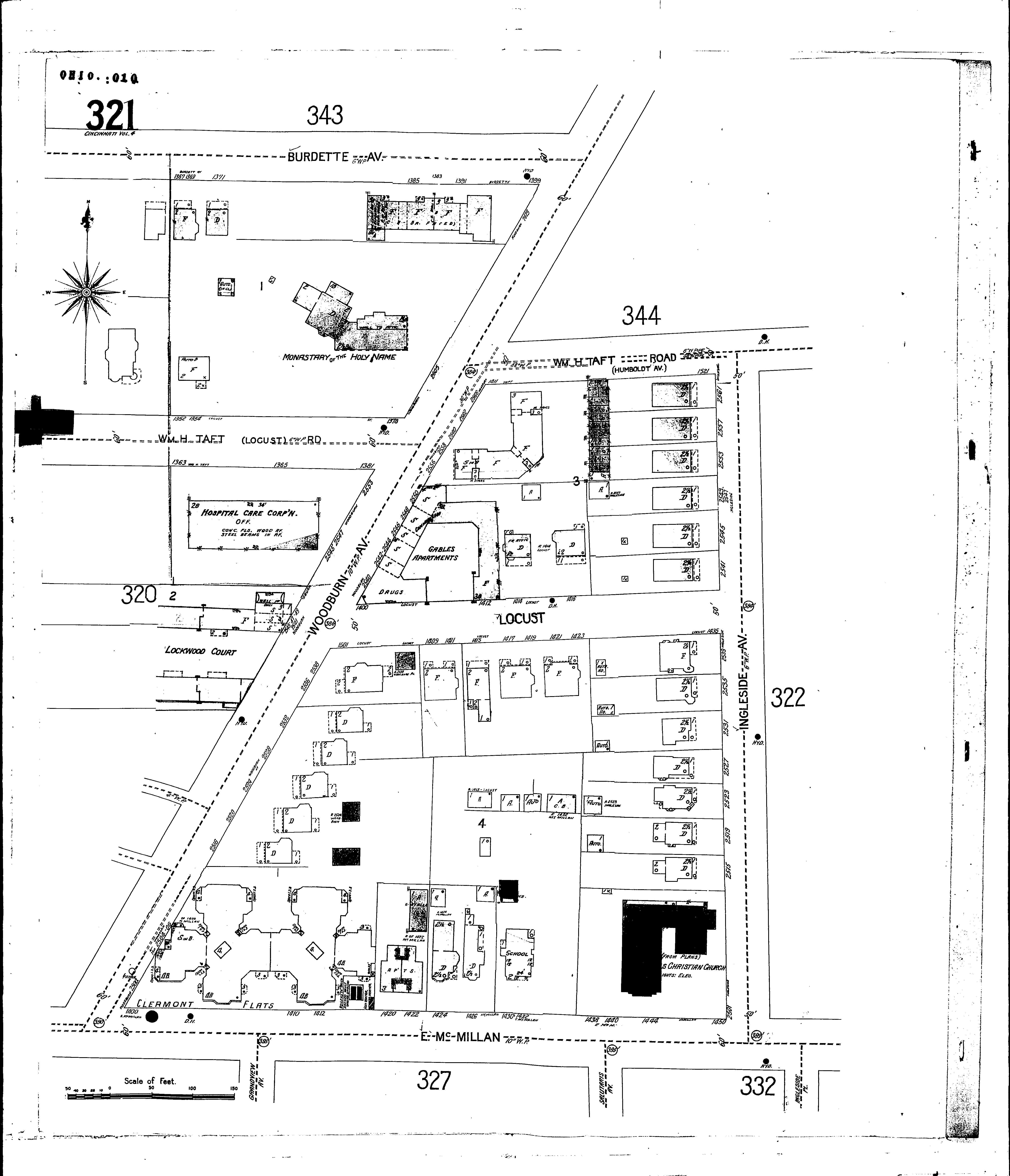 Locations: Cincinnati & Suburban Bell Telephone Co.: Woodburn Exchange Clermont Flats Gables Apartments Monastery of the Holy Name Walnut Hills Christian Church